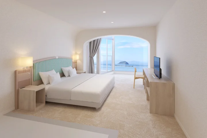 マリン:「ほんとだ…波の音が心地いいね。リニューアルした客室、どんな感じかな?」