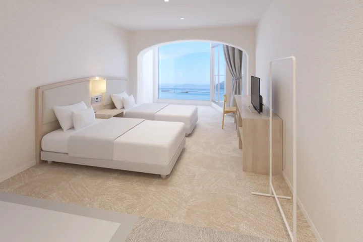 - 客室のデザイン刷新(白とベージュを基調とした落ち着いた空間)