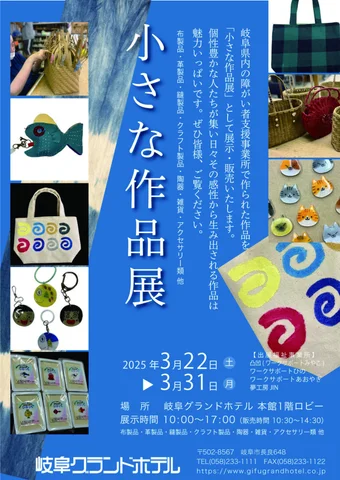 岐阜グランドホテルで、県内4つの障がい者支援事業所が制作した作品を展示・販売する「小さな作品展」が開催されます。今年で5回目となるこのイベントでは、布製品や革製品、陶器、アクセサリーなど、個性あふれる作品が勢ぞろい。過去には牛乳パックをアップサイクルしたトートバッグが大人気となるなど、毎年注目を集めています。期間中は各事業所のスタッフが会場におり、作品の想いやこだわりを直接聞きながらお買い物が楽しめます。温かみのある手作り作品の魅力に触れてみませんか?