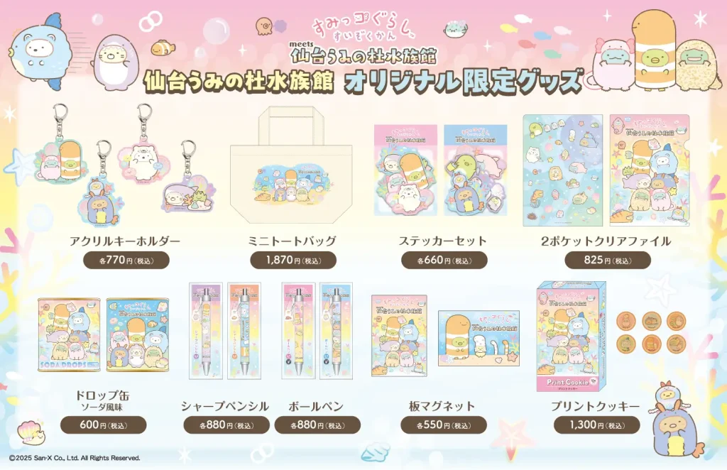 「すみっコぐらしすいぞくかん meets 仙台うみの杜水族館」では、さまざまなオリジナルグッズが販売されます。具体的には、以下のようなアイテムがあります。