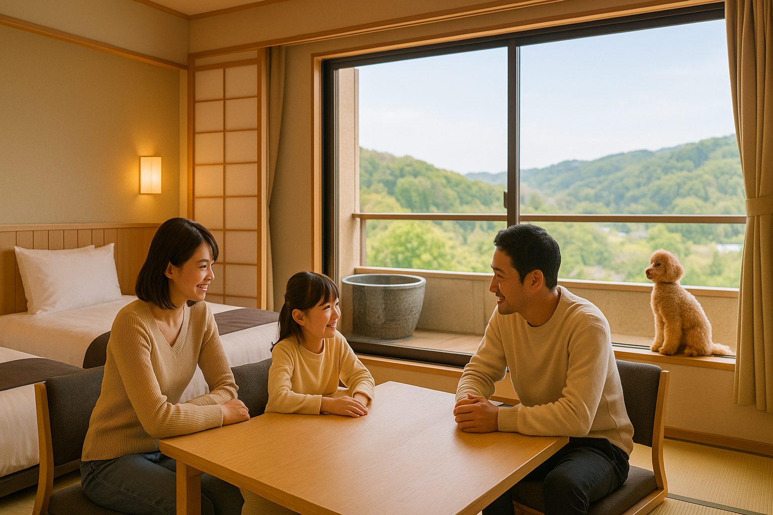 小型犬と一緒に泊まれる専用和室が用意されており、大切な家族の一員であるペットとも思い出に残る旅が楽しめます。